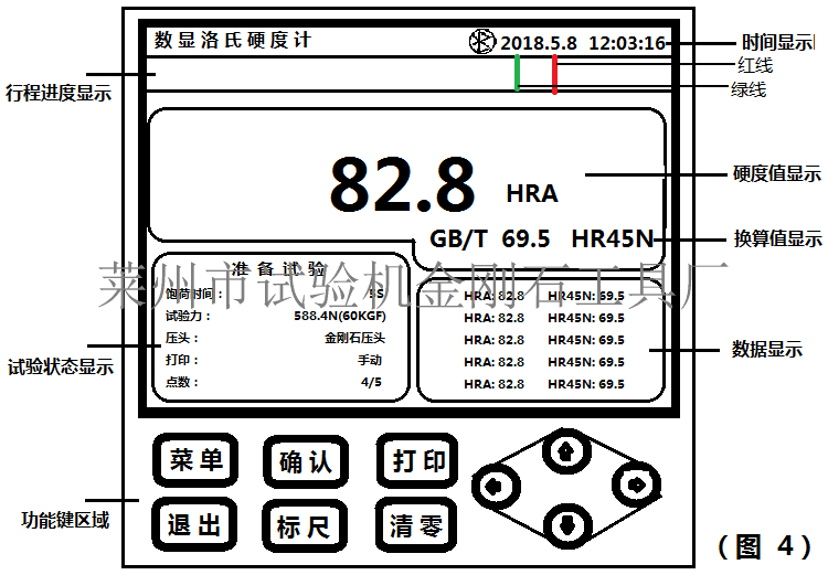 近年來(lái),由于數(shù)顯洛氏硬度計(jì)測(cè)試精度高、無(wú)人為讀數(shù)誤差等優(yōu)點(diǎn),越來(lái)越受到企業(yè)用戶的青睞,我廠生產(chǎn)的這款數(shù)顯洛氏硬度計(jì)較之以往市場(chǎng)的數(shù)顯洛氏硬度計(jì)的優(yōu)勢(shì)在于:1.采用高精度傳感器與精度萊金品牌金剛石壓頭(壓頭精度為標(biāo)準(zhǔn)級(jí)),確保儀器精度;2.可選配洛氏的其他標(biāo)尺;3.內(nèi)置軟件可對(duì)儀器進(jìn)行±3HR的補(bǔ)償;4.可自動(dòng)轉(zhuǎn)化為其他標(biāo)尺硬度值。現(xiàn)在就使用者較為關(guān)心的數(shù)顯洛氏硬度計(jì)屏幕主要功能鍵做下簡(jiǎn)單介紹,若有進(jìn)一步了解的客戶可致電萊州市試驗(yàn)機(jī)金剛石工具廠技術(shù)科:0535-2215886。